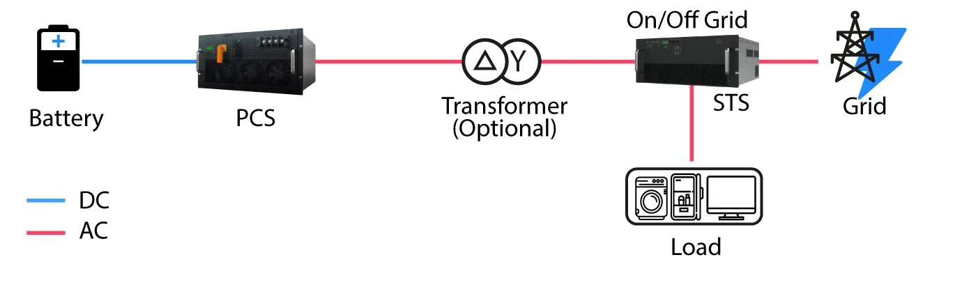 Optional kann das System mit einem STS (Static Transfer Switch) ausgestattet werden. Dieser überwacht permanent die Stromversorgung und schaltet bei Netzausfällen oder instabilen Netzbedingungen innerhalb von Millisekunden automatisch auf den Batteriespeicher um. Die statische, verschleißfreie Umschaltung gewährleistet eine unterbrechungsfreie Stromversorgung auch für sensible Verbraucher.